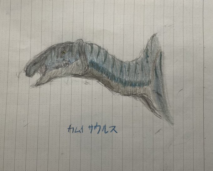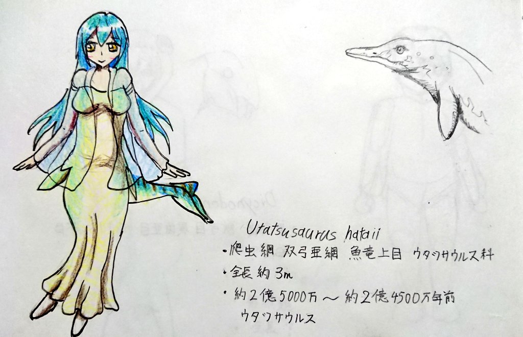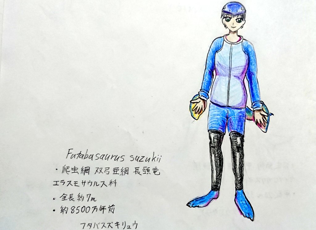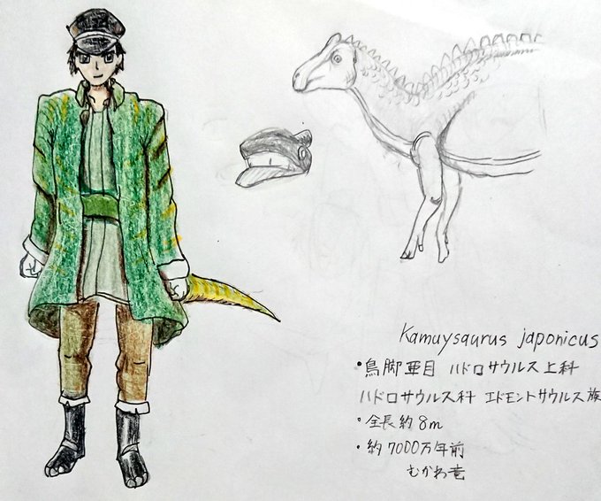 #今月描いた絵を晒そう #日本列島生物擬人化シリーズ #擬人化 #カムイサウルス #フタバスズキリュウ 4月17日恐竜の日記念に描いた日本列島で発掘された中生代の古生物たち 色々なキャラクターを参考に自分なりに擬人化してみました。