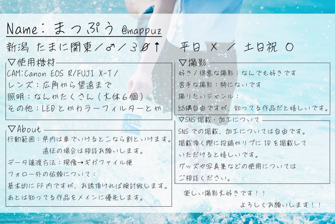 更新+プロフ作りました かっこいい、可愛いを形に出来るカメラマン目指してます! これがしたい、あれがしたいを叶えるお手伝いをします🙇♂️ RT、いいねで気になる方がいらっしゃいましたらお迎えいきます! #カメラプロフ #コスプレイヤーさんと繫がりたい #カメラマンさんと繫がりたい