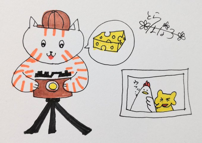 おはようございます!! #カメラ発明記念日 ハイッチーズ!!素適な笑顔だね!! 今日も素適な日曜日を〜🤗 #絵描きさんと繋がりたい #みんなで楽しむTwitter展覧会 #イラスト #油性ペン #マッキー画