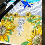 #カメレオンペン夏企画2022 まだまだ終わってませんよ〜! スタッフ2号も引き続き塗っています…😂 キャンペーンに皆様参加してくださいね! 詳細は固ツイから☀️ #カメレオンペン #イラスト #ひまわり #chameleonpen #illustration #sunflower #キャンペーン実施中