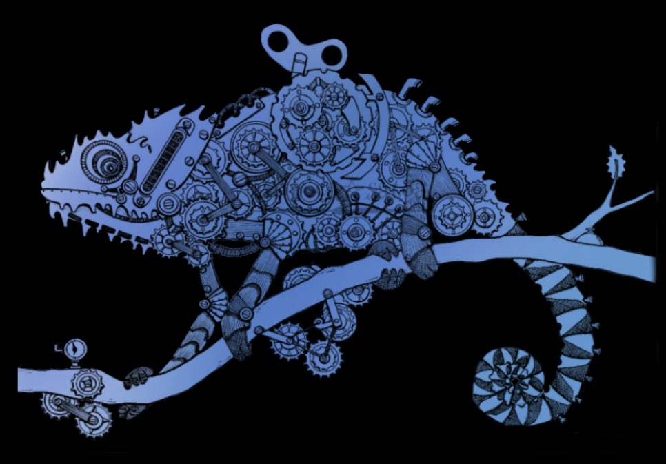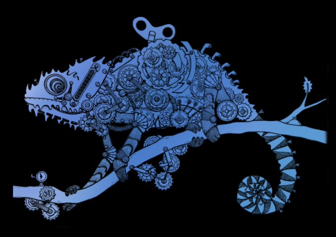 今日もお疲れ様でした(*≧∀≦*) ⚙ブルーカメレオン⚙ #スチームパンクイラスト #歯車イラスト #カメレオン #ペン画 #絵描きさんと繫がりたい #絵柄好みって人にフォローされたい #アトリエの系譜S