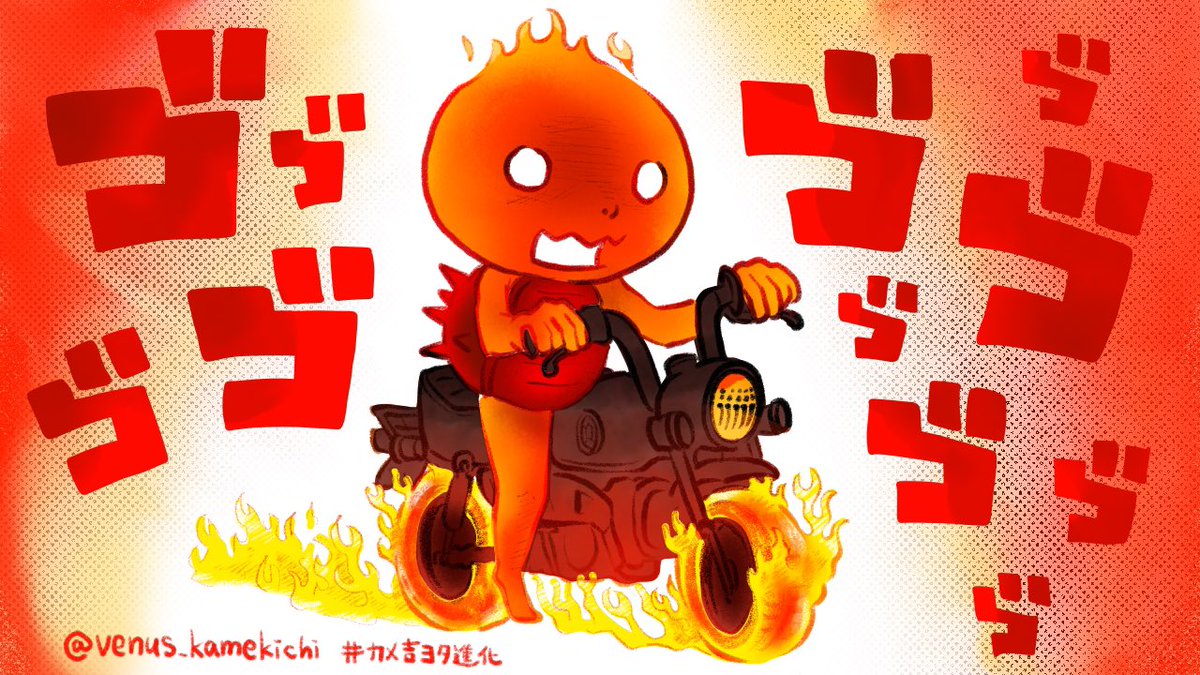 ゴゴゴゴゴ… #ヴィーナスギャラリー 全店 15日 朝10時オープン‼︎ お近くのヴィーナスギャラリーへ‼︎ ゴ来店オマチシテオリマス‼︎ #カメ吉 #イラスト #カメ吉ヨタ進化 ※ヨタ進化⇨カメ吉が激しく赤く燃え上がり…🔥 〈ヨタって?→twitter.com/venus_kamekich…〉