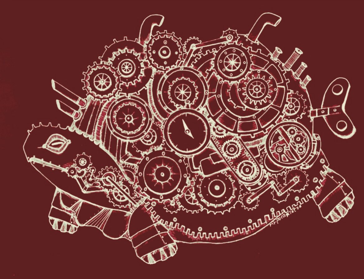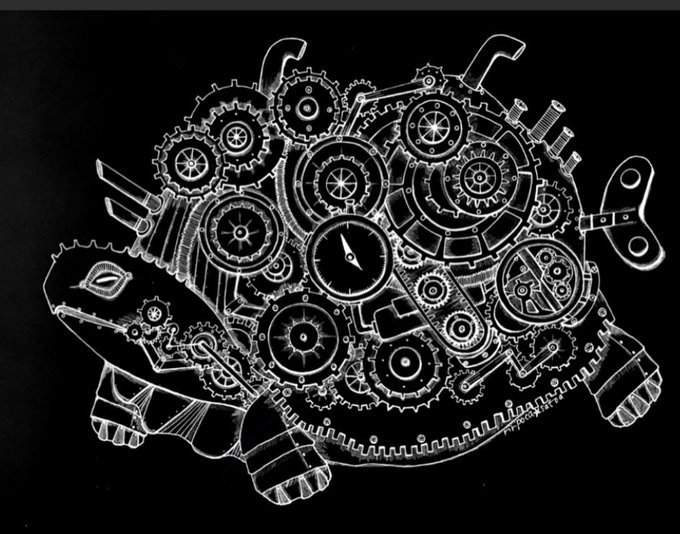 おはようございます(´∀`*) 今日も暑くなりそうです(^◇^;) 水分補給して頑張りましょ💪 ⚙カメカ⚙ #スチームパンクイラスト #歯車イラスト #カメ #ペン画 #絵描きさんと繫がりたい #絵柄が好みって人にフォローされたい