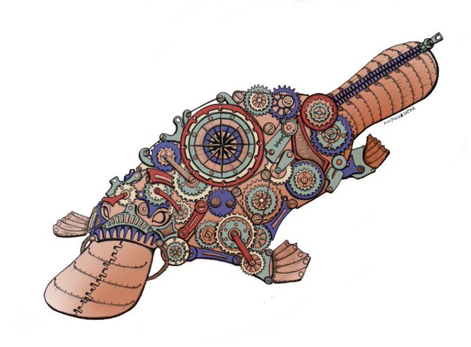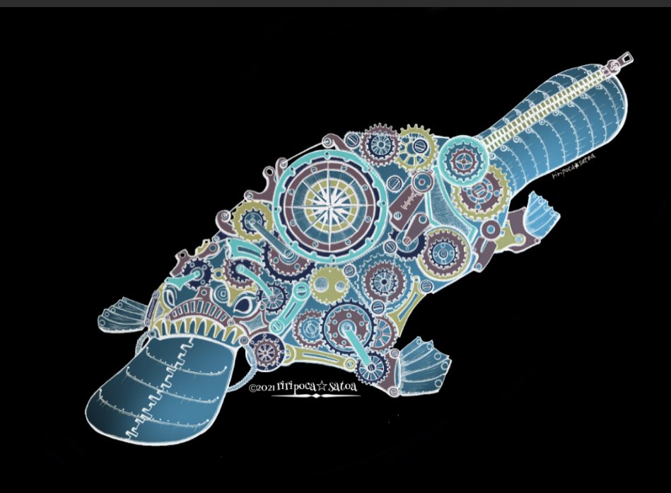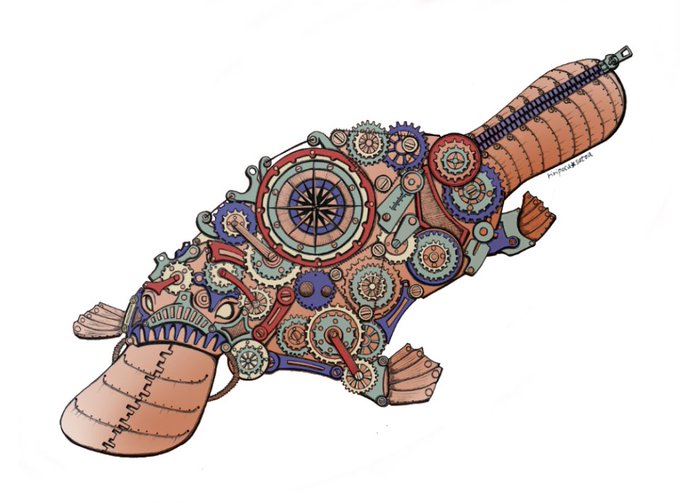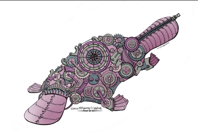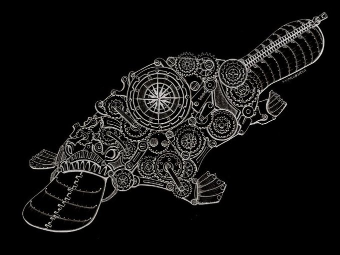 おはようございます(o^^o) 今日もよろしくお願いします✨ ⚙カモノハシ⚙ #スチームパンクイラスト #歯車イラスト #カモノハシ #ペン画 #アトリエの系譜S #絵師さんとつながりたい