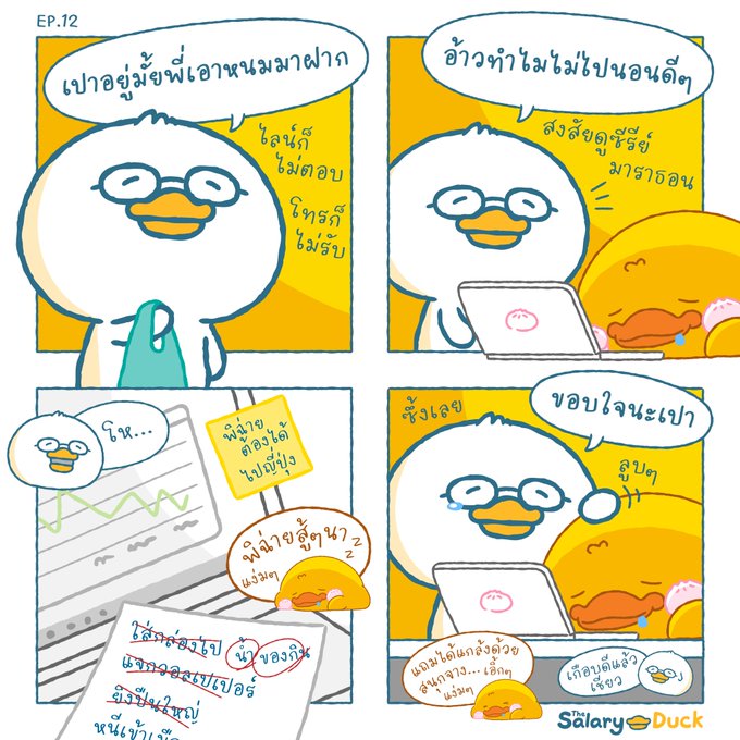 เรื่องอื่นเอาไว้ก่อน!!! ติดตามตอนอื่นๆได้ที่ webtoons.com/th/challenge/t… ขอขอบคุณทุกกำลังใจฮะ #linesticker #illustration #イラスト #duck #アヒル #アヒル #鳥 #アヒル #カモ鴨 #トリ鳥 #thesaralyduck #ขึ้นฉ่าย #มนุษย์เป็ดรายเดือน #เป็ดเปา #pedpao #まんじゅうカモ