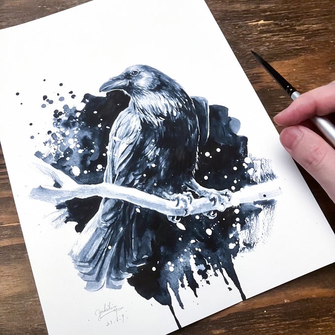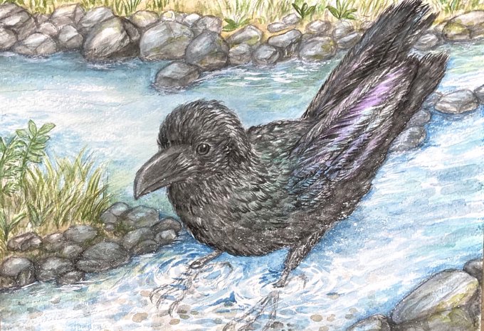【水彩】 カラスのハッピーが川で水浴びする絵の簡易イラストメイキング 【カラスのハッピーカレンダー2024】 youtu.be/C7OYSHYvgIM @YouTubeより 完成しました😊 #カラス #カラスのハッピー #ハシブトガラス #水彩 #カラスのハッピーカレンダー2024