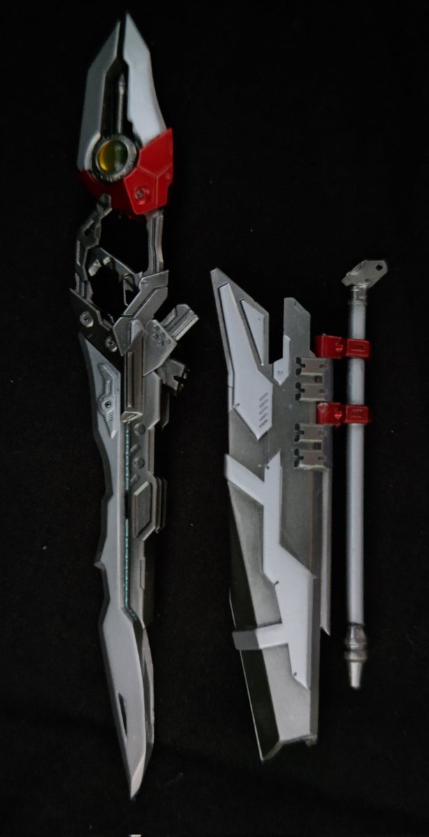 今日の朝模型① 菱田治様のCHARMカラドボルグ トップコートして完成😆 舞台では鞘に毎回ちゃんと収まるのか? ドキドキしながら見てました😂 そして、その鞘がまさかの盾🛡になる仕様でした🤗 #カラドボルグ #アサルトリリィCHARM部 #アサルトリリィドール部 #アサルトリリィ