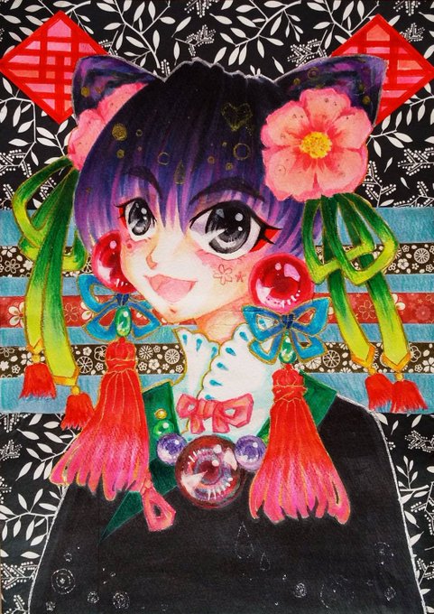 #カラフルな作品を見せてほしいです 「極彩色チャイナ」 過去絵ですが、出来るだけ沢山の色を使った絵を描こうと頑張りました🌸🌸🌸 多分男の娘です✨ #イラスト #アナログ絵 #イラスト好きと繋がりたい #絵描きさんと繫がりたい #秋の創作クラスタフォロー祭り #男の娘