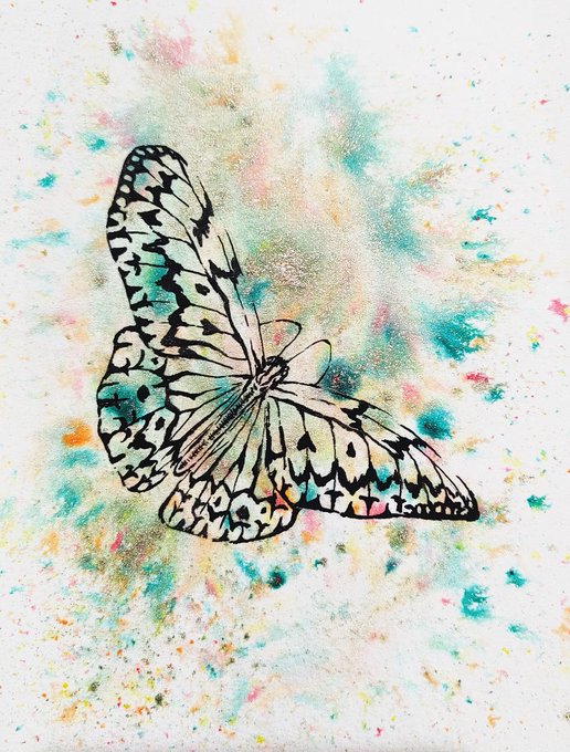 相互フォローさんと絵の具交換準備🎨私の手持ちからはピクシーパウダーを。詰め替えで粉が舞ったので、ついでにそのまま絵も描きました(あえての追い溢しパウダー) 「カラフル白黒動物」 #カラフル白黒動物 #イラスト #水彩 #絵描きさんと繋がりたい #みんなで楽しむTwitter展覧会 #蝶々