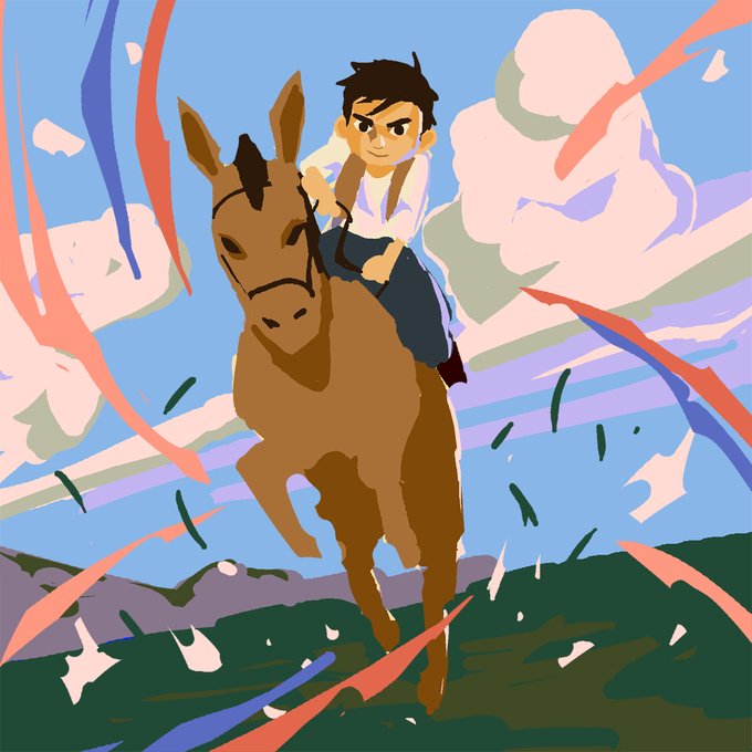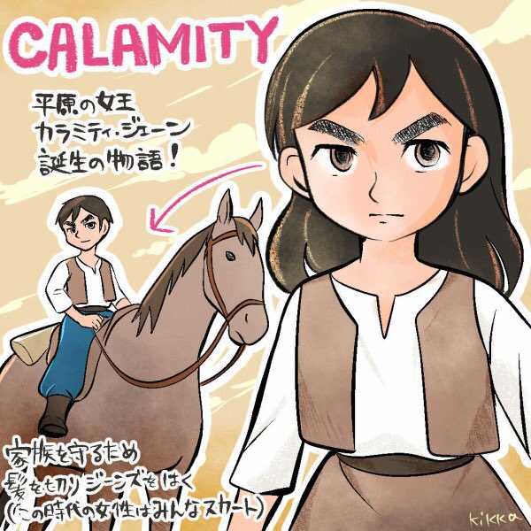 伝説の女性ガンマン カラミティ・ジェーンの子供時代の物語を描いたアニメ映画『カラミティ』 物語も絵も本当にすばらしいのでぜひ見てほしいです🤗✨✨ 映画のあの美しい色づかいは再現が難しいですがマーサが馬上から星空を仰ぐシーンを描きました🌟 #カラミティ描いてみた