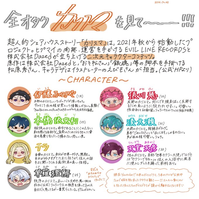 全人類にカリスマを布教したい一心で描いた、、今ならYouTubeでカリスマと検索するだけで全部履修出来るので、、是非、、是非、、、 MV① youtu.be/DMspeUzVS_M ボイスドラマ① youtu.be/7jD81TYriRc #カリスマファンアート #カリスマ