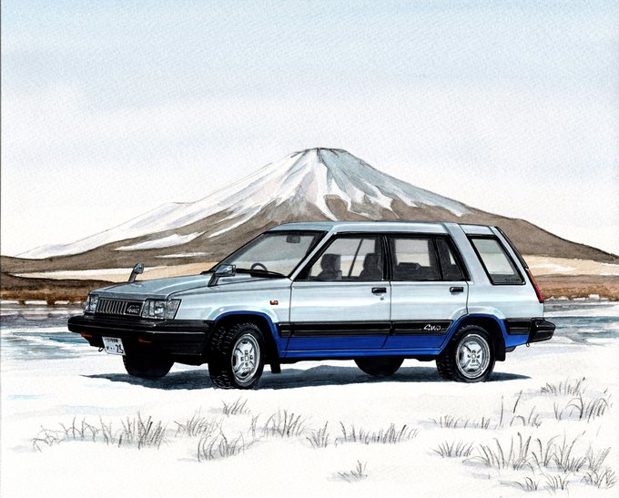 2022.5.15 スプリンターカリブ 前作の黄色のリフトバックの後継車として購入したのが四輪駆動の赤い #スプリンターカリブ (初代)。雪国(?)岐阜の年3回の大雪対策に大いに役立った上、想定外の家族スキーツアーも楽しめた懐かしの1台です。 #愛車 #Toyota #4WD #watercolor #水彩画 #カリブ #車好き