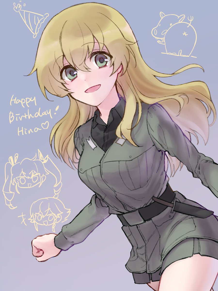 アンツィオ高校カルパッチョさんお誕生日おめでとうございます。お祝いにテレテレだけどウィンクしてくれるパッチョさんで描いてみました。最終章4話では見学組で一番解説役できそうなのできっと出番あるものと思います。特にたかちゃん向けで! #カルパッチョ生誕祭2022 #カルパッチョ生誕祭