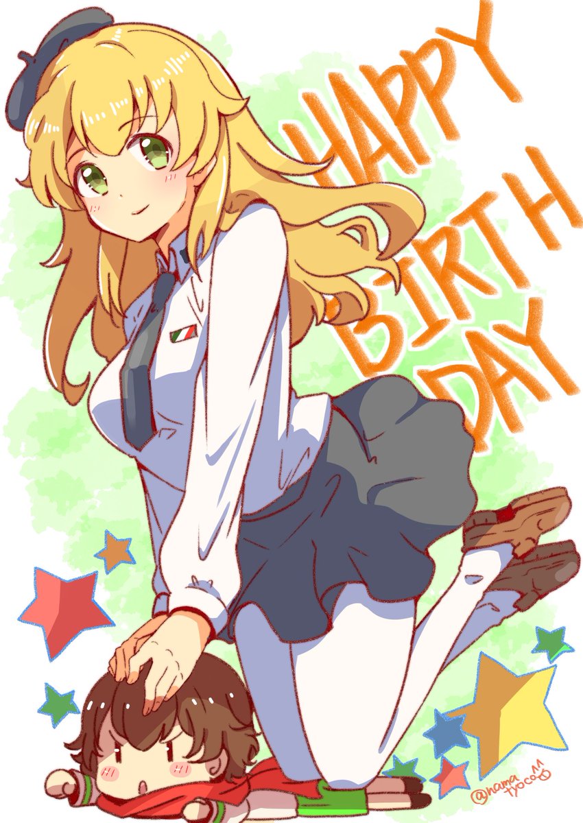 パッチョさんお誕生日おめでとうございます アンツィオの中では(?)おちついた美人という印象があるので、休憩中にお祝いしてみたイメージで描いてみました(*´ω`*) #カルパッチョ生誕祭2021 #カルパッチョ生誕祭