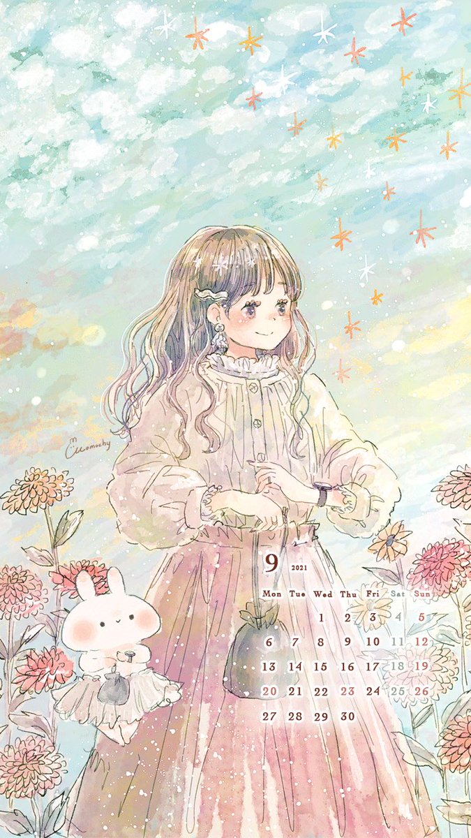 🌼カレンダー配布🌼 9月はダリアを描きました .*・゚ 素敵な秋の訪れになりますように🕊 ↓他サイズの保存はこちら ❁ momochy.com/archives/11279 #カレンダー #フリーアイコン