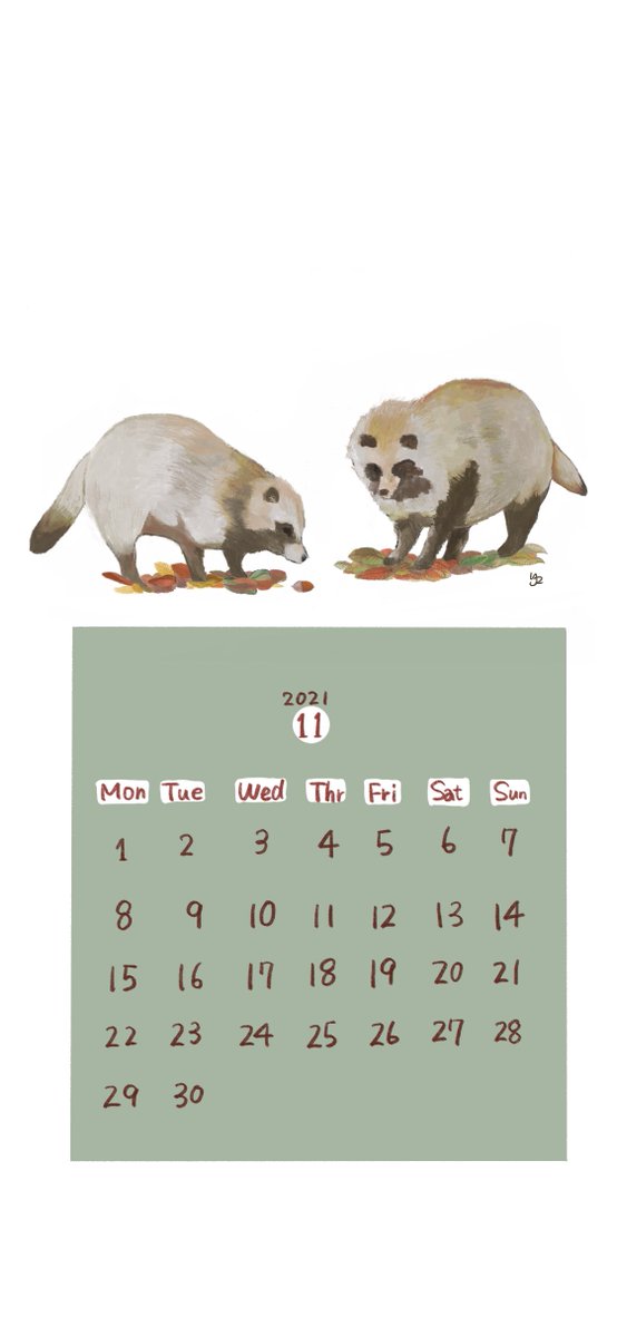 11月のカレンダーです☺️ 長女がどんぐりを拾ってきたので今月はどんくりさんにしてみました~🍂 待受やロック画面に使ってください🥰✨✨ #イラスト #フリー壁紙 #カレンダー2021 #art_月日 #毎月一日にカレンダーを描こう #11月
