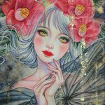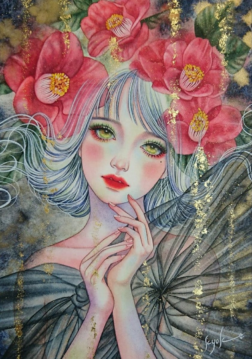 皆さまからの「カレンダー届きました」というツイートがとても嬉しい… 本当にありがとうございます 1月はこの椿の子からスタートです♪ 【想紅(おもいくれない)】 サムホール アルシュ紙に水彩 金箔 ※個人蔵作品です #カレンダー2022 #colorofmelody #星響子Official