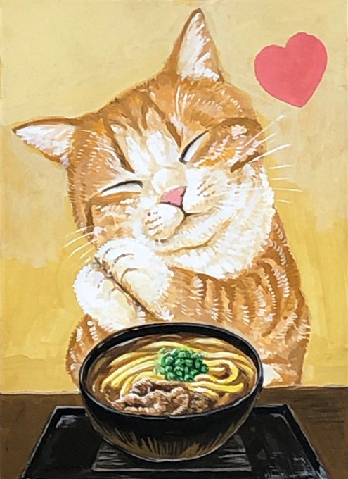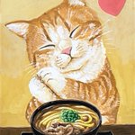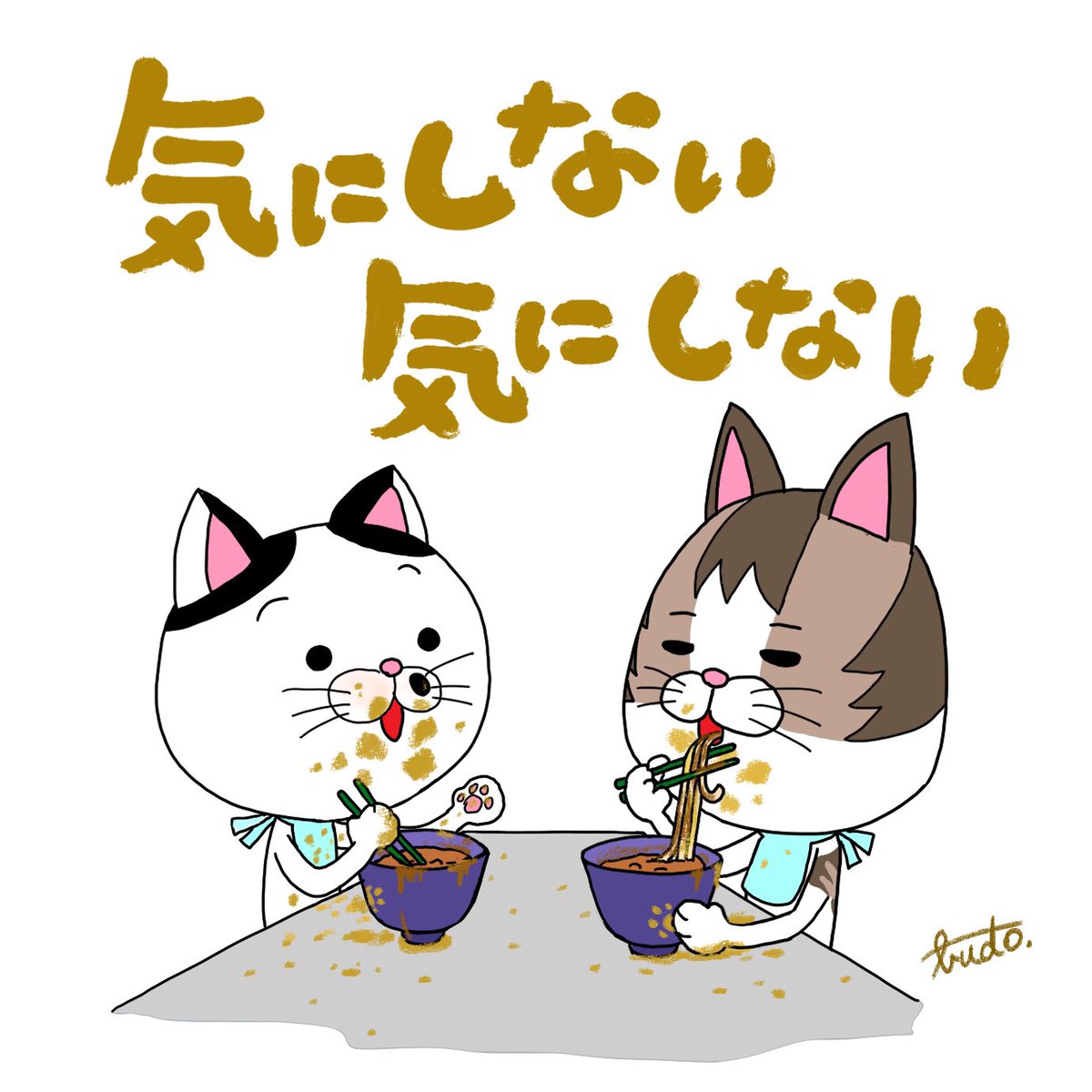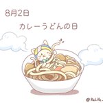 カレーうどんの日に便乗するデビ! 今日のお昼は冷凍のカレーうどんをいただいたデビ♪なんとお餅も入れたデビ♪ つまり力(ちから)レーうどんデビ!(`・ω・´)キリッ #カレーうどんの日 #イラスト #キャラクター #ゆるキャラ #ネコ #絵描きさんと繫がりたい #illustration #character #cat #kawaii