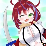 そしてこちらの背景の梨のようなものいぇーい!とちゅっちゅっちゅ!を2枚描かせていただきました #茜音カンナ #カンナ誕生2023 #カンナ・イン・わんだ~ランド #茜音色に染まれ #ななしいんく twitter.com/atsuta_gobat/s…