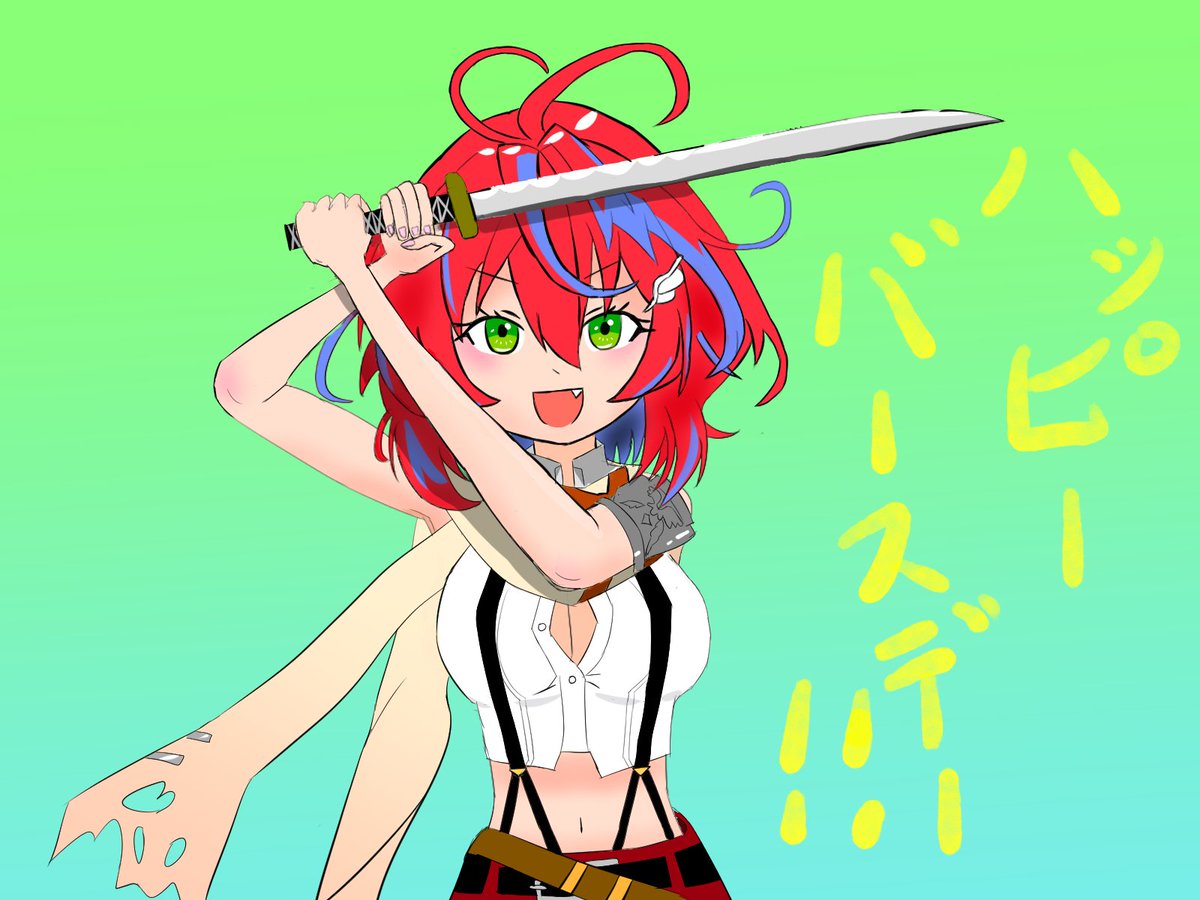 お誕生日 -夜の部- お誕生日の場を借りて Sing upトップバッターだったり あのメンツの中一歩も引かず パワフルに歌いきって凄かったわねって感想イラスト #茜音色に染まれ #カンナ誕生2023 #ななしのライブやばい
