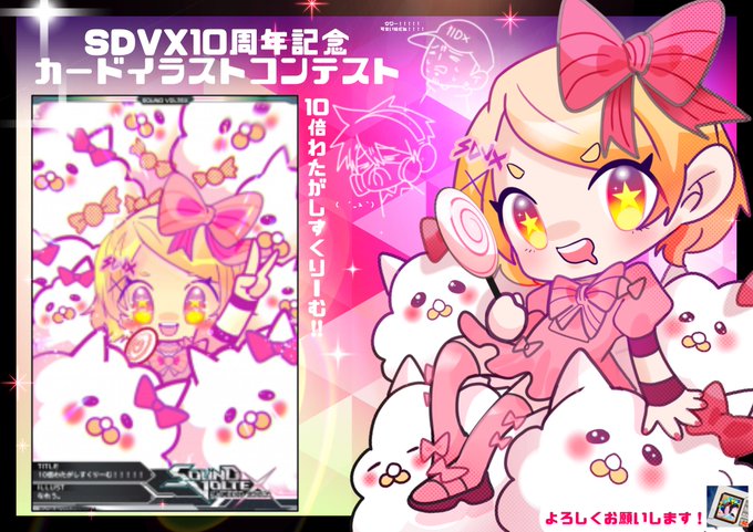 【やったー】 ボルテ10周年記念カードイラストコンテスト採用されました😭😭😭😭😭😭カワイイね⁉️⁉️ やったあああああ‼️‼️‼️ あわわわわわわふわふわふわわ‼️‼️☁️☁️☁️☁️☁️☁️👁👁👁 「10倍わたがしすくりーむ!!!!!」 よろしくお願いしますすす‼️‼️‼️🟩o(`・ω´・+o) #SDVX #カードコネクト twitter.com/soundvoltex573…
