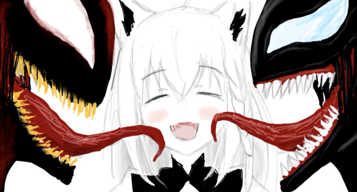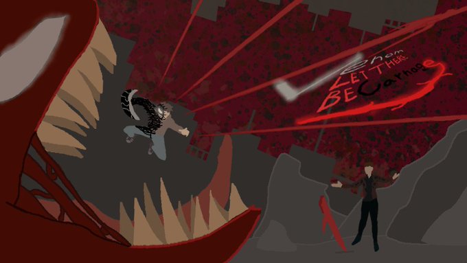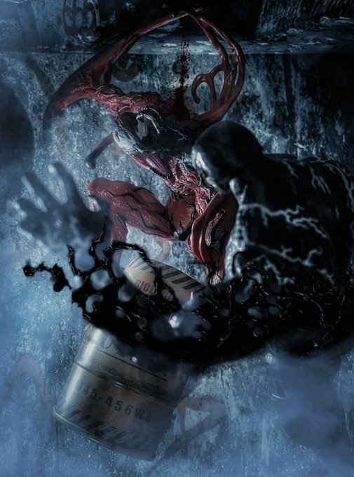 「最悪は、``塗り替え‘‘ される。」 デットプールのアーツ買おうかな🤔 ヴェノムのアーツとか出たら絶対買う! #イラスト好きな人と繋がりたい #イラスト #ヴェノム #カーネイジ #VenomLetThereBeCarnage