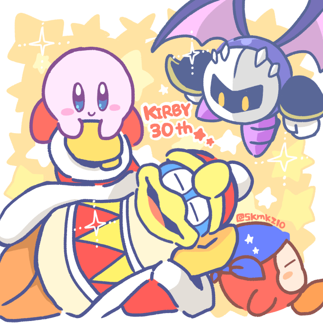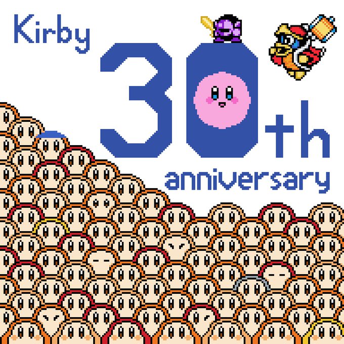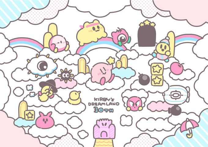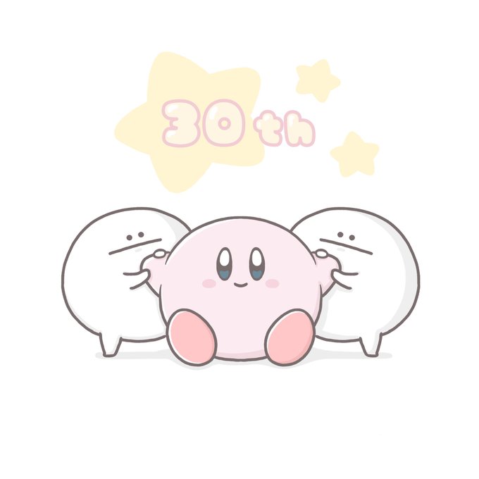 星のカービィ30周年なので、お祝いイラストを描いてみました。カービィ大好きだからこれだけは描きたかった...。 おめでとうカービィ!! #カービィのハッピーバースデー #イラスト #カービィ30周年