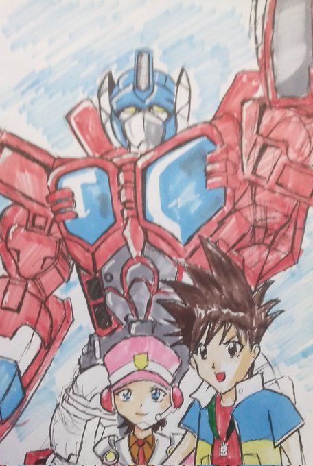 練習としてトランスフォーマーカーロボット(R.I.D)のファイヤーコンボイとユウキとアイを描きました 復刻版ゴッドファイヤーコンボイは修正再販はないのだろうか #絵描きさんと繋がりたい #絵描きフォロバ100 #みんなで楽しむTwitter展覧会 #トランスフォーマー #カーロボット
