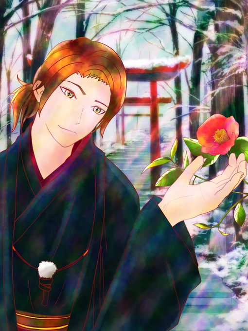 ガイ先生、お誕生日おめでとうございます! 椿を愛でる和服ガイさん。 まだまだ寒いですが、春はすぐそこに。 #ガイ誕生祭2023 #ガイ #FitBoxing2 #フィットボクシング #イラスト #フィボ絵
