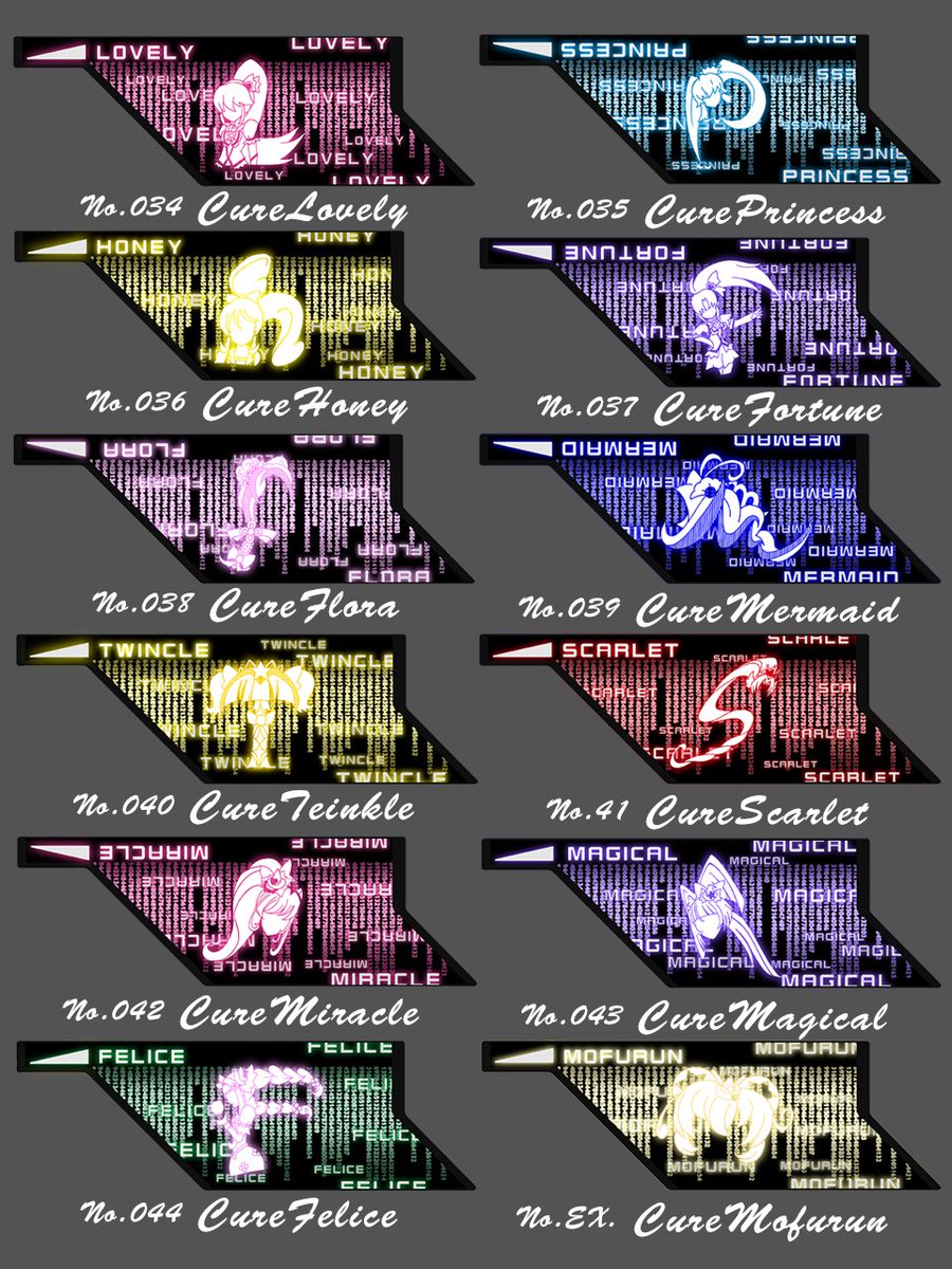 キュアガイアメモリ トロピカル~ジュ その1 まずは1年生チーム。 このチームに規則性なんかない #precure #プリキュアート #ガイアメモリ #画廊Camille #Camille_labo #キュアガイアメモリ