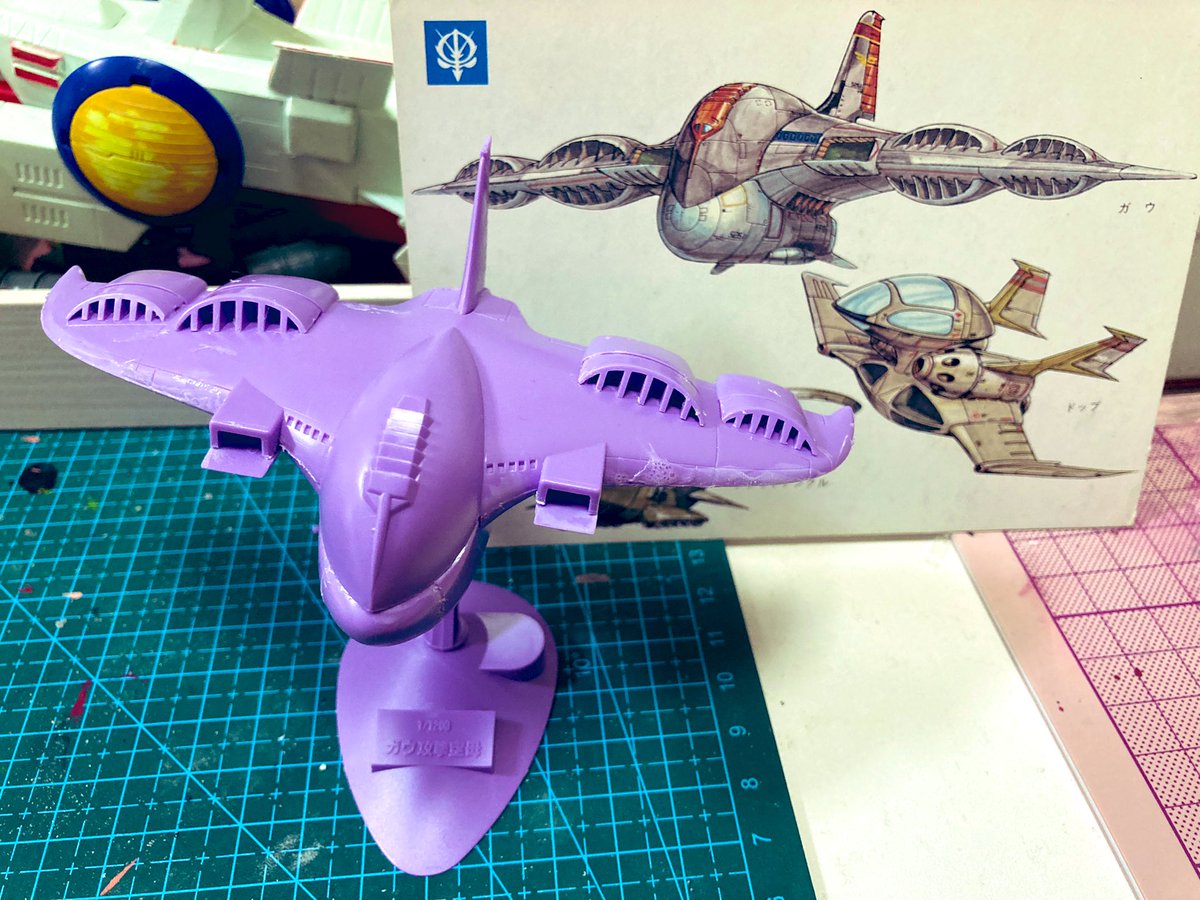 Fagotto店長が旧キットの戦艦系にはまりつつある・・・ということで今はガウを製作中! 塗装はこれで大体出来ていますが、もう少し手を入れるとのこと✨ #旧キットはいいぞ #ガウ #ガンプラの画像貼るとRTされると聞いて