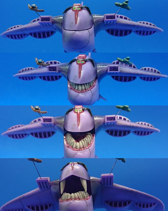 ジオンの爆撃機であるガウの旧キット。 シャークマウス塗装を施すとこんな感じになりました🤗 製作動画を是非ご視聴下さいませ🤓 👇動画はこちらから👇 youtu.be/3riZVsW2bys #旧キット #ガウ #ガンプラ好きと繋がりたい #シボブラ