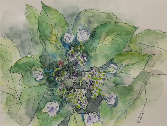 思いやりの心とガクアジサイ 心が疲れると人を思いやる余裕がなくなります。。 そんな時はまず自分に思いやりを持ってあげましょう。 #紫陽花 #ガクアジサイ #花言葉 #絵描きさんと繫がりたい #watercolor #hydrangea #polarbear #梅雨