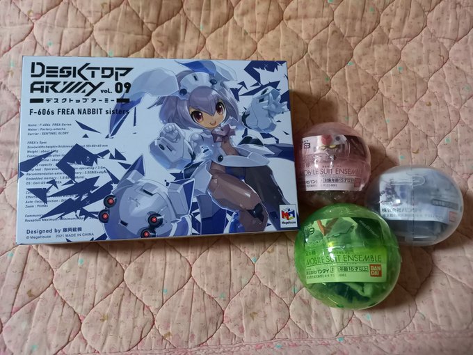 #デスクトップアーミー #モビルスーツアンサンブル #ガシャポン戦士f デスクトップアーミーのフレアナビットを買ってガシャポンを回してきた! 結果はこんな感じで概ね満足。ガシャポン系は曲がったパーツをドライヤー等で直さないと😅