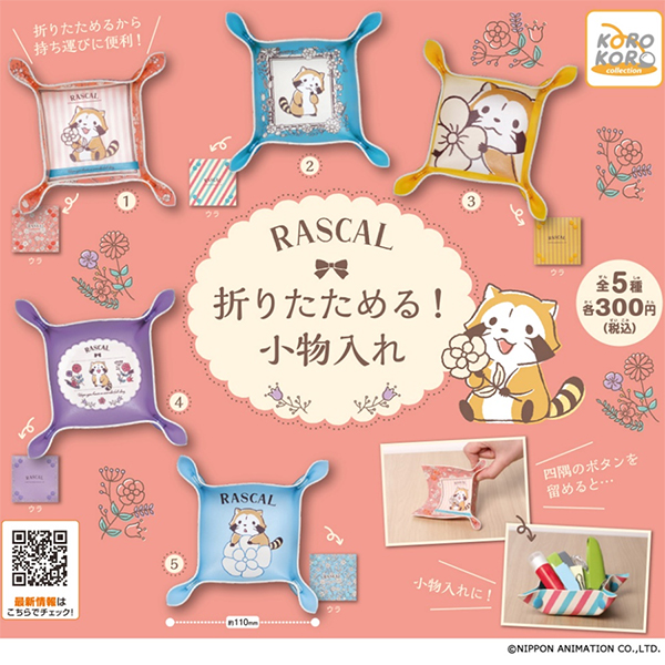 📢カプセルトイ自販機に『折りたためる!小物入れ』が登場! 折りたためるから、旅行先などに持っていくのにピッタリ✨とってもキュートなデザインで全5種類。見つけたら、是非コンプリートしてミャ(◆'∇'◆) araiguma-rascal.com/news_event/202… #ラスカル #ガチャ
