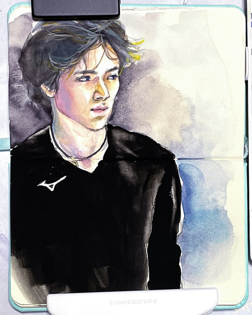 Shoma is in Champéry 🇨🇭⛸✨ #shomauno #宇野昌磨 #weloveyoushoma #goodluckshoma #gouache #ガッシュ #不透明水彩