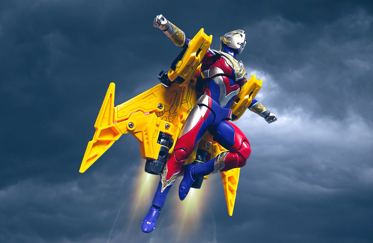 #夜のフィギュア撮影会 お題「協力」(過去) タツミ隊長 「ガッツファルコンで、ウルトラマンを援護しろ!」 ナナセ・ヒマリ 「ラジャー! ファルコンちゃん、行っくよーっ!」 #ウルトラマントリガー #ガッツファルコン