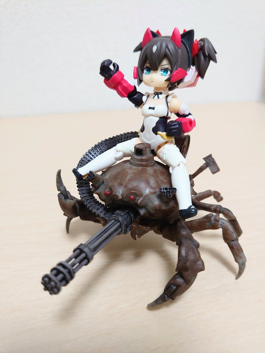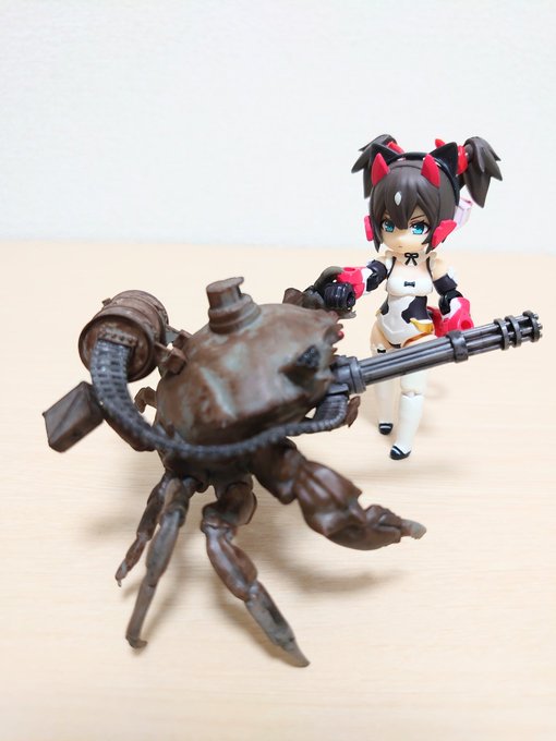 風変わりな奴にあった。機械?生き物? 厳つい外見にも関わらず結構気さくでイイヤツだった。 おっと、それ以上に力をいれないでよ。 お前も仲間を探してるんだね… …旅先でガチャる!その② 噂通り凄い出来! #デスクトップアーミー #ガトリングガニ