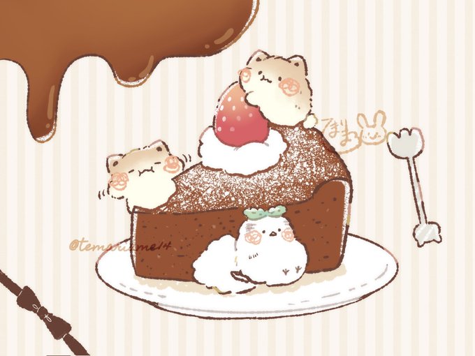 今日はガトーショコラの日だそうです☺️🐥✨ #イラスト #digitalart #illustration #OCART #今日は何の日 #ガトーショコラの日 #illusRT #LINE絵文字 #お絵描き #鳥 #カエル #パンダ