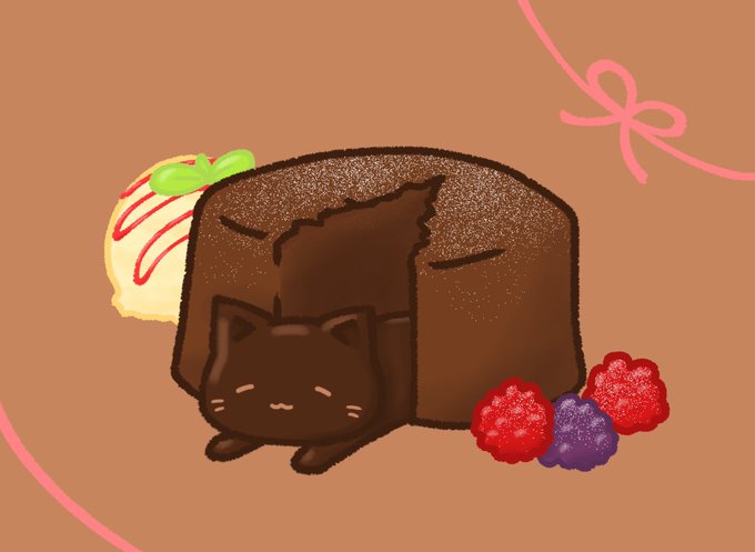 今日は #ガトーショコラの日 だそうなので またもや過去絵ですみませんが フォンニャンショコラ (フォンダンショコラも広義にはガトーショコラです) ねこれーとが溶け出てきます #猫 #イラスト #フォンダンショコラ
