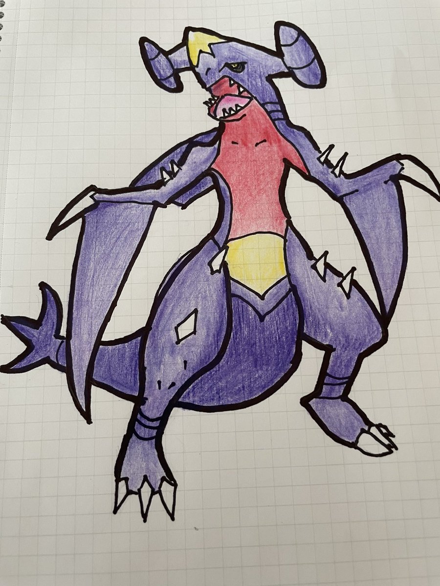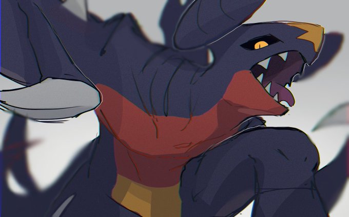 #イラスト好きさんと繋がりたい #ポケモン #ガブリアス シロナさんの切り札でもあるガブリアスを描いて見ました♪ 描いてみて始めて知ったのですが、このポケモンってサメのハンマーヘッドがベースなんですね♪ ひぐらしの千雨ちゃんが好きそうですw