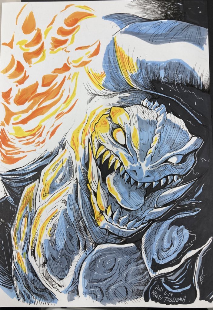 GAMERA-Rebirthより、ジャイガーを描いてみた。 53年振りの復活おめでとう!! リバース版ジャイガーくん、禍々しくて不気味なデザインしてて既にめちゃくちゃ大好きです。活躍が楽しみですね。 #ガメラリバース #ジャイガー #GameraRebirth