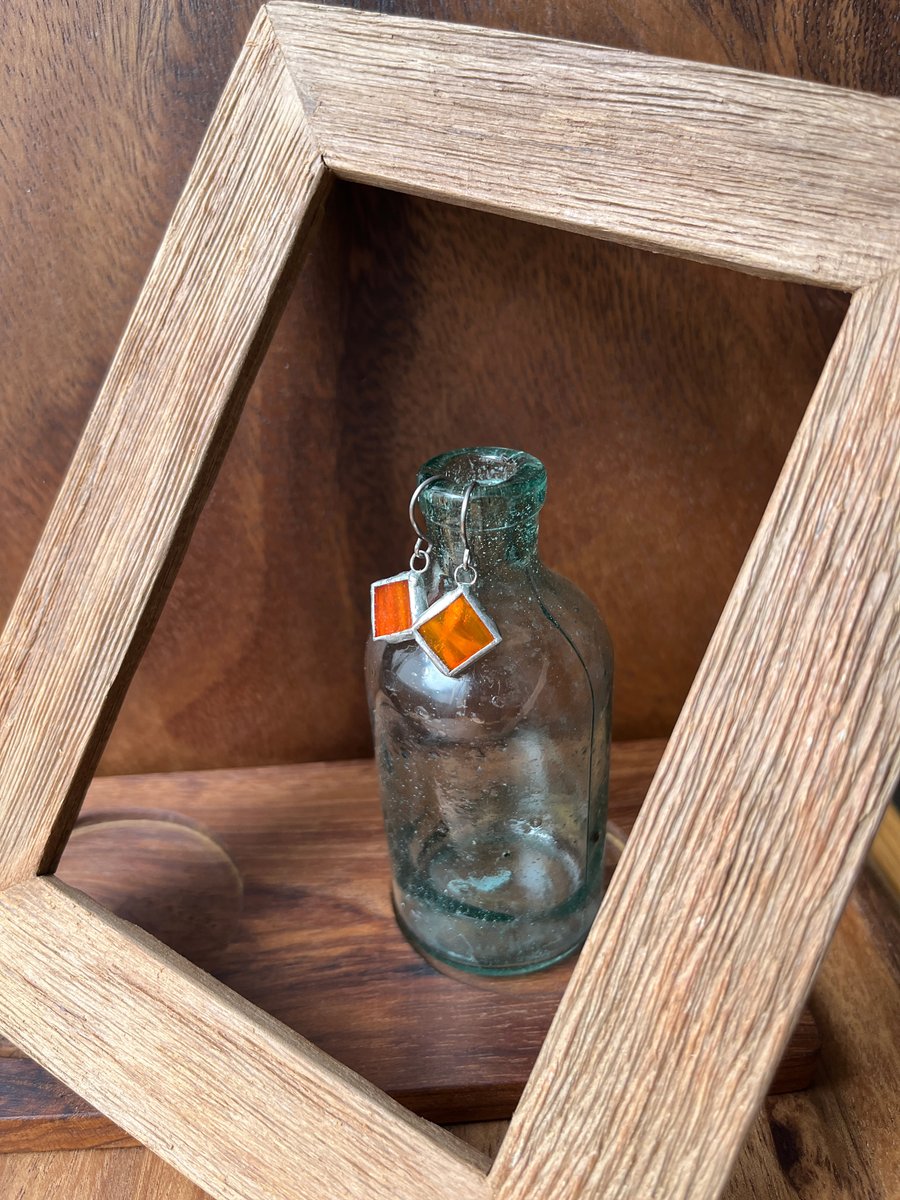 8月の新作【鱗 山吹】 和柄の鱗文様から着想を得て作りました🍊 中心が空洞なのが可愛いポイント! 浴衣に合わせるのもおすすめしたい🥰 #illustration #イラスト #ガラスアクセサリー #レトロ #和装小物 #ハンドメイド好きさんと繋がりたい #夏の創作クラスタフォロー祭り