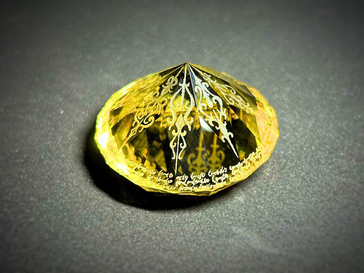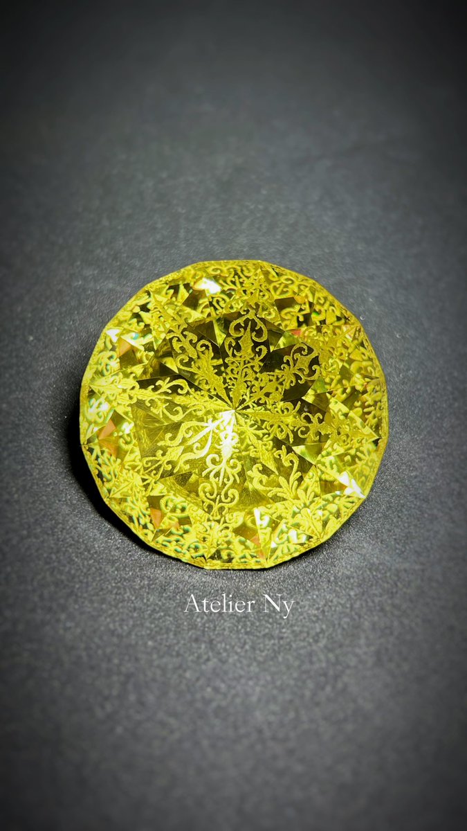 レモンイエローな子。 電動ルーターを使用してフリーハンドの手彫りで制作しています。 大きさですが直径40mmぐらいです。 エルデンリングにこんなのありそうよね。 #ハンドメイド #ハンドメイド好きさんと繋がりたい #ガラスエングレービング