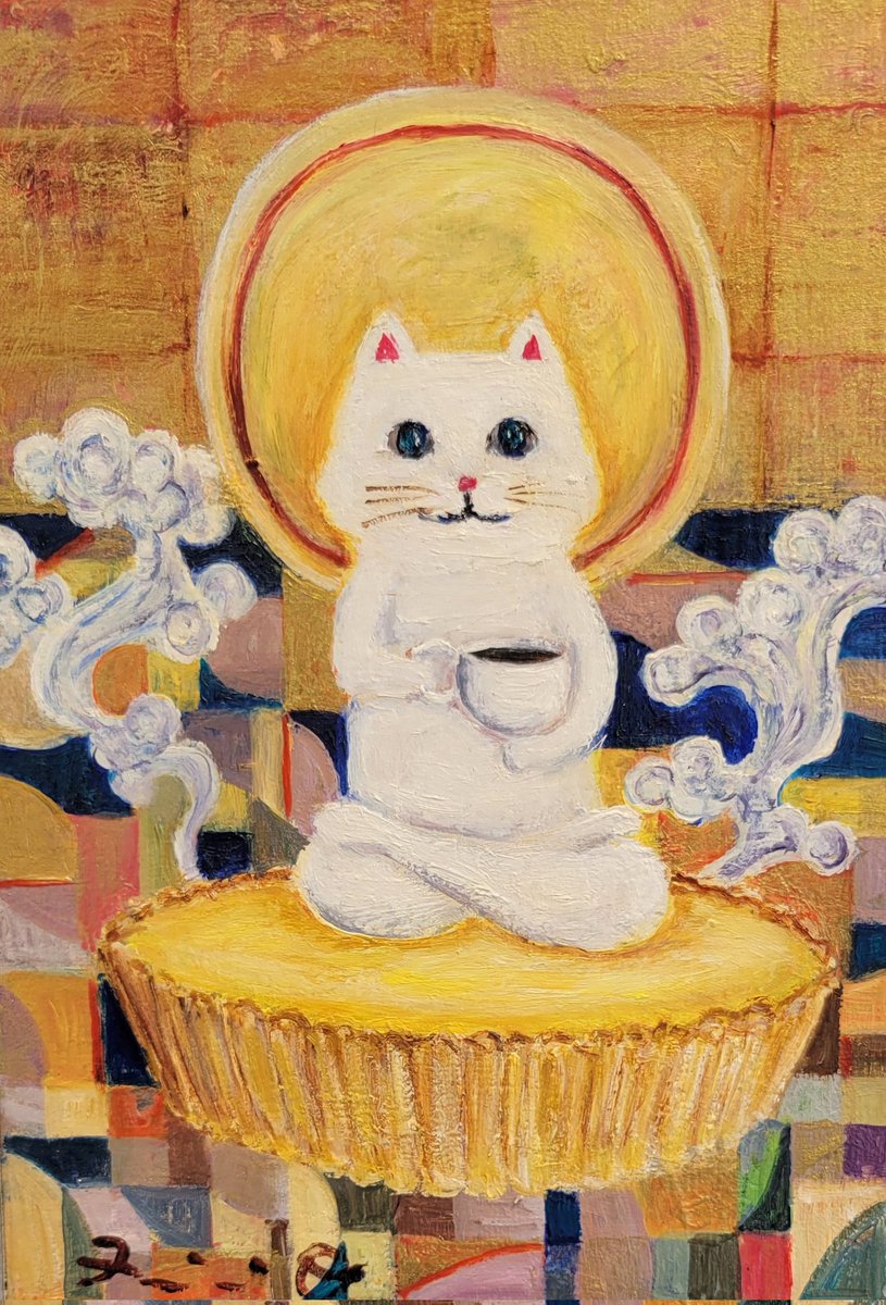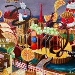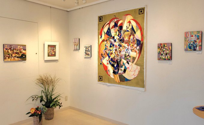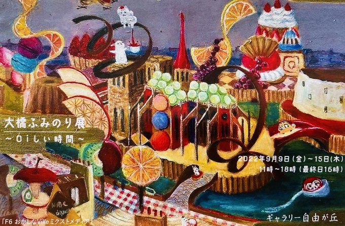 お菓子と音楽と動物をテーマに色彩のリズムの中でシュールに表現する人気作家・大橋ふみのりさんの個展、本日からです。 #サロンドトーンヌ会員 #油彩画 #ガラス絵 #水彩画 #ミクストメディア #絵描きさんと繋がりたい