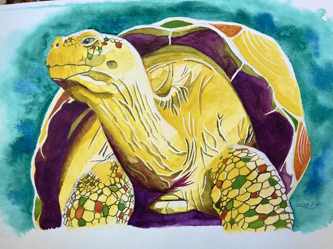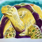 #ガラパゴスゾウガメ と #フィンチ は良きパートナーで、ゾウガメの体についた虫をフィンチがたべてくれる。ゆかいなアニマル大冒険へGOでみて、描きたかつたシーンです。 #動物 #イラスト #animal #ibispaint