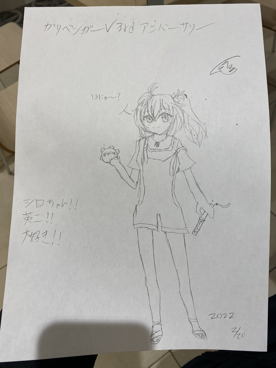忘れないように覚えてるうちに好きなとこ描かなきゃって描いてたけど、これみんなのスクショあるんだったって思い出して運営さんの心の広さに感謝してる🙏 それはそうとオリジナル筋トレのちえりちゃんのウィンクは最高でしたね。 #ガリベンガーV超感謝祭 #ちぇり絵