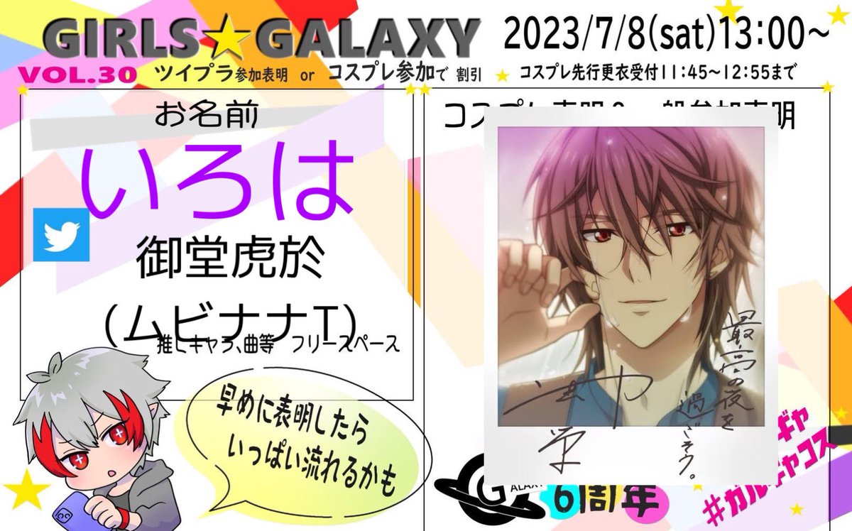 7月8日はGIRLS★GALAXY 6th記念会! スイーツ販売でお呼ばれしてます✨ #ガルギャ さんのスタンプお持ちの方は お分かりいただけるでしょう! 特別なデザインクッキーご用意してます🙆♀️✨カラフルで可愛い! この機会にGETしてください! その他にもお菓子ご用意してますので是非記念やお土産に✨ twitter.com/girlsgalaxy201…