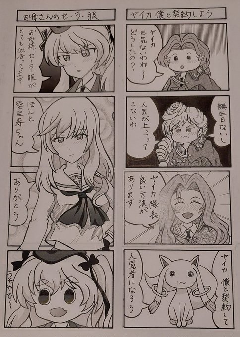 ガルパン四コマ漫画「ちょうちょ」 最終回 「楽しい島田一家」 「姉妹の再会」 ミカと愛里寿が姉妹であると仮定して描いた四コマ漫画です。 ミカの正体が、島田ミカだといいな~ 約4年半四コマ漫画を読んでいただき、ありがとうございました。 #ガルパン四コマ漫画 #ガルパン