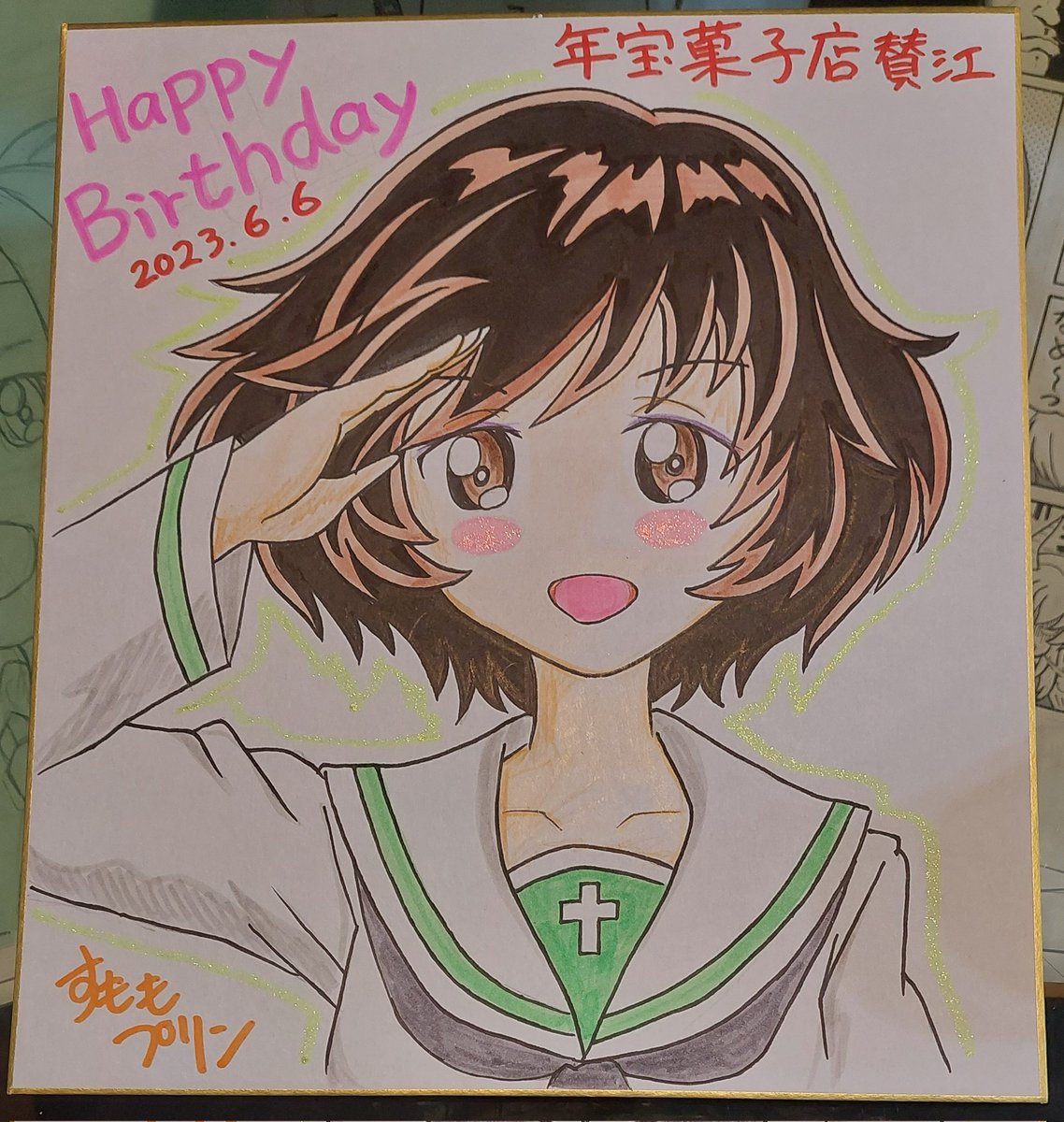 ゆかりん♥️HAPPY♥️BIRTHDAY♥️ お誕生日おめでとうございます♥️ 色紙と四コマ漫画で祝います。 大洗盛り上がるといいな~ #秋山優花里生誕祭2023 #秋山優花里生誕祭 #秋山優花里誕生日 #ガルパン四コマ漫画